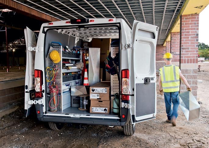 ![]() Design of RAM PromasterIt doesn't matter if you're on construction sites or on delivery routes all day; the exterior of the Ram ProMaster® cargo van was designed to work in any environment. When the rear doors swing open 260 degrees, they fold nearly flat against the van's exterior. This allows more space for workers to maneuver while loading and unloading. Because when you're doing the heavy lifting, the rear doors shouldn't stand in your way. With 49-inch openings on the sliding doors and a 60-inch doorway in the rear door, all three cargo access points are wide enough to fit standard pallets. So now that forklift can help make loading and unloading the Ram ProMaster® easier. The sidewalls of the Ram ProMaster® are constructed at almost a 90° angle, making it easier to stack, carry and load boxes. A straight stack maximizes cargo space and helps make loads more stable when navigating delivery sites. |