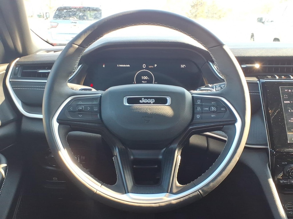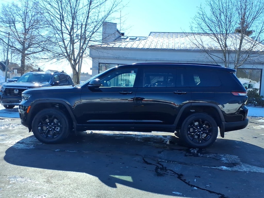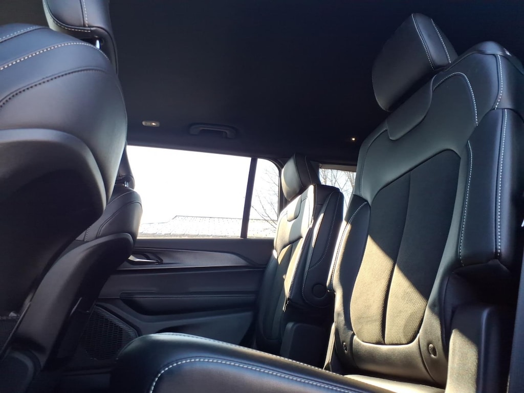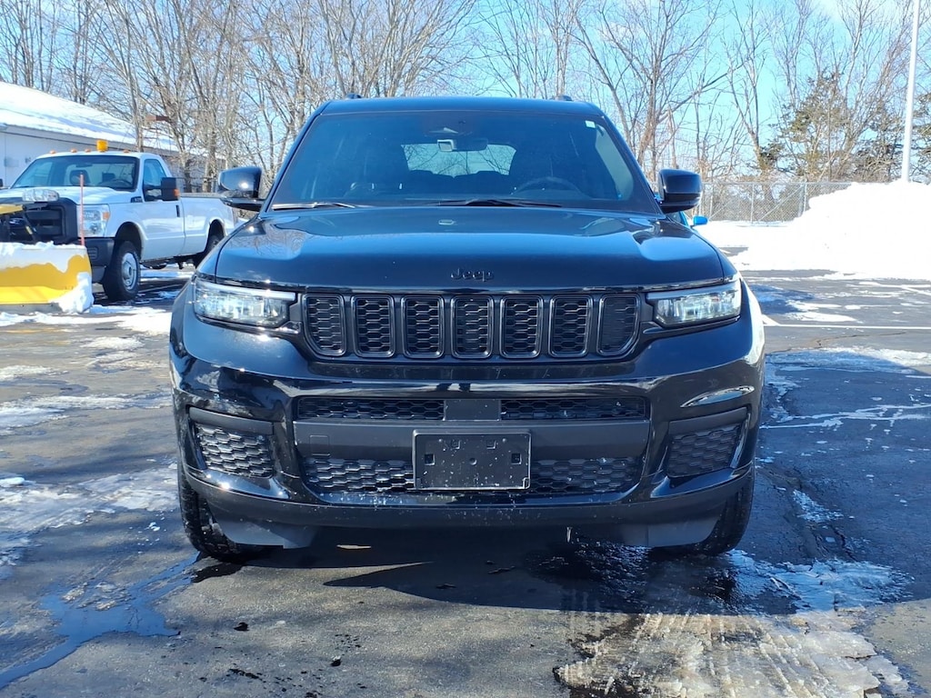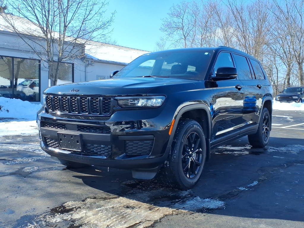 2025 Jeep Grand Cherokee L Altitude X Vehicle is equipped: MOPAR Finishing Package (MOPAR Front Splash Guards, MOPAR Paint Protection Film, and MOPAR Rear Splash Guards with Jeep Logo), Quick Order Package 23M Altitude X (115V Auxiliary Power Outlet, 3rd Row Charge-Only USB Ports, Altitude X, Black Headliner, Capri Leatherette/Suede Seats, Delete Laredo Badge, Gloss Black Exterior Accents, Heated Front Seats, Heated Steering Wheel, Power Liftgate, Power Sunroof, Rain Sensitive Windshield Wipers, Remote Start System, Selectable Tire Fill Alert, Wheels: 18 x 8.0 Fully Painted Aluminum 1, and Wireless Charging Pad), Chrysler Group Certified Pre-Owned Certified, 3.45 Rear Axle Ratio, 3rd row seats: split-bench, 4-Wheel Disc Brakes, 6 Speakers, ABS brakes, Air Conditioning, Alloy wheels, AM/FM radio: SiriusXM, Anti-whiplash front head restraints, Automatic temperature control, Brake assist, Bumpers: body-color, Cloth Seats, Compass, Delay-off headlights, Driver door bin, Driver vanity mirror, Dual front impact airbags, Dual front side impact airbags, Electronic Stability Control, Emergency communication system, Four wheel independent suspension, Front anti-roll bar, Front Bucket Seats, Front Center Armrest w/Storage, Front dual zone A/C, Front License Plate Bracket, Front reading lights, Fully automatic headlights, Heated door mirrors, Illuminated entry, Knee airbag, Low tire pressure warning, Manual Fold Seatbacks, Model Year Tracking, Normal Duty Suspension, Occupant sensing airbag, Outside temperature display, Overhead airbag, Overhead console, Panic alarm, ParkView Rear Back-Up Camera, Passenger door bin, Passenger vanity mirror, Power door mirrors, Power driver seat, Power steering, Power windows, Radio data system, Radio: Uconnect 5 with 8.4 Display, Rear air conditioning, Rear anti-roll bar, Rear reading lights, Rear window defroster, Rear window wiper, Reclining 3rd row seat, Remote keyless entry, Security system, Speed control, Speed-Sensitive Wipers, Split folding rear seat, Spoiler, Steering wheel mounted audio controls, Tachometer, Telescoping steering wheel, Tilt steering wheel, Traction control, Trip computer, Variably intermittent wipers, Voltmeter, and Wheels: 18 x 8.0 Fully Painted Aluminum.