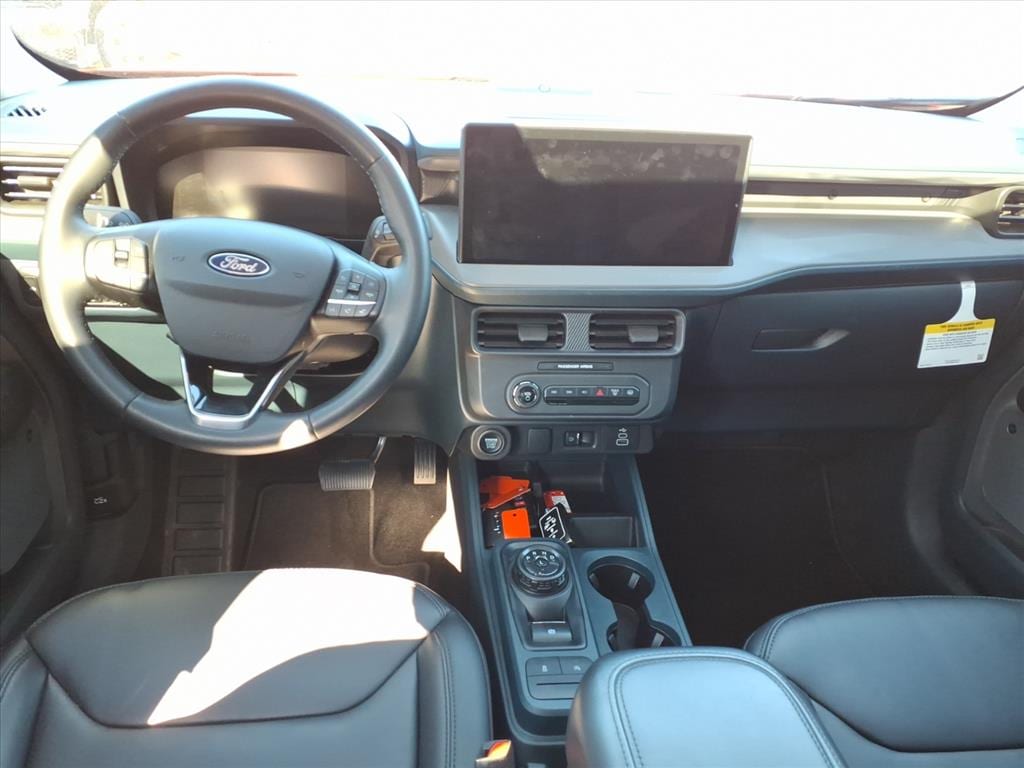 New Price! 2025 Ford Maverick Lariat Vehicle is equipped: Black Appearance Package (Black Grille, Black Interior Accents, Front & Back Black Edition Ford Logo, and Wheels: 19 Black Painted Aluminum), Equipment Group 502A, 2.91 Axle Ratio, 4-Wheel Disc Brakes, 8 Speakers, ABS brakes, ActiveX Trimmed Heated Front Bucket Seats, Air Conditioning, Alloy wheels, AM/FM radio: SiriusXM with 360L, Apple CarPlay/Android Auto, Auto High-beam Headlights, Automatic temperature control, Backup Camera, Brake assist, Bumpers: body-color, Compass, Delay-off headlights, Driver door bin, Driver vanity mirror, Dual front impact airbags, Dual front side impact airbags, Electronic Stability Control, Emergency communication system: SYNC 4 911 Assist, Four wheel independent suspension, Front anti-roll bar, Front Bucket Seats, Front Center Armrest, Front dual zone A/C, Front reading lights, Fully automatic headlights, Heated door mirrors, Heated front seats, Heated steering wheel, Illuminated entry, Internet access capable: FordPass Connect 5G, Knee airbag, Low tire pressure warning, Navigation system: Connected Navigation, Occupant sensing airbag, Outside temperature display, Overhead airbag, Overhead console, Panic alarm, Passenger door bin, Passenger vanity mirror, Power door mirrors, Power driver seat, Power Moonroof, Power steering, Power windows, Radio data system, Radio: B&O Sound System by Bang & Olufsen, Rear anti-roll bar, Rear seat center armrest, Rear step bumper, Remote keyless entry, Security system, SiriusXM w/360L, Speed control, Speed-sensing steering, Steering wheel mounted audio controls, SYNC 4 w/Enhanced Voice Recognition, Telescoping steering wheel, Tilt steering wheel, Tough Bed Spray-In Bedliner Delete (DISC), Traction control, Trip computer, and Wheels: 19 Machined Painted Aluminum.
