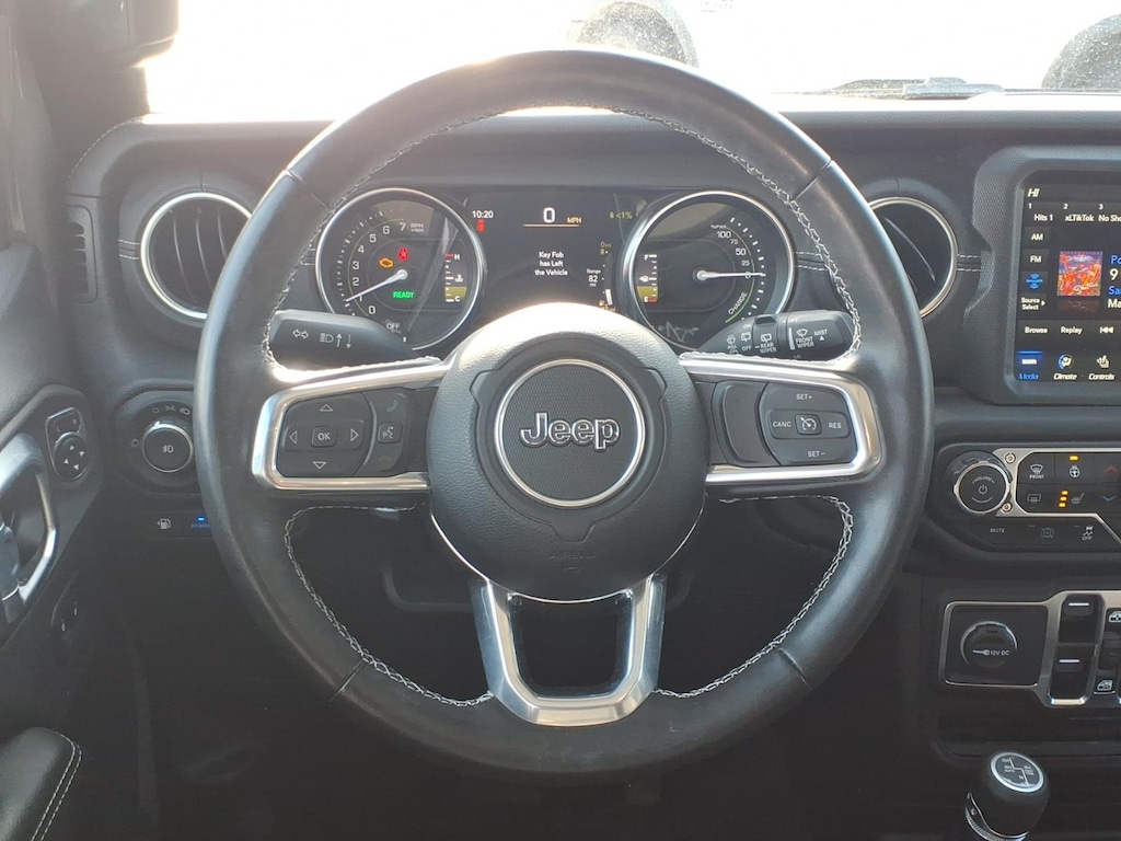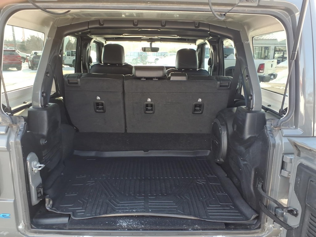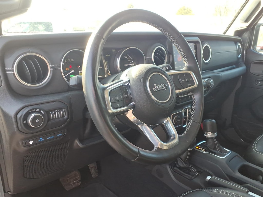2022 Jeep Wrangler Unlimited Sahara 4xe 2.0L I4 DOHC. Vehicle is equipped: Cold Weather Group (Heated Front Seats, Heated Steering Wheel, and Remote Start System), Quick Order Package 29P, Chrysler Group Certified Pre-Owned Certified, 2.0L I4 DOHC, 3.73 Rear Axle Ratio, 4-Wheel Disc Brakes, 9 Speakers, ABS brakes, Air Conditioning, Alloy wheels, AM/FM radio, Apple CarPlay/Android Auto, Auto-dimming Rear-View mirror, Automatic temperature control, Body Color 3-Piece Hard Top, Brake assist, Compass, Delay-off headlights, Driver door bin, Driver vanity mirror, Dual front impact airbags, Dual front side impact airbags, Electronic Stability Control, Emergency communication system: SiriusXM Guardian, Freedom Panel Storage Bag, Front anti-roll bar, Front Bucket Seats, Front Center Armrest w/Storage, Front dual zone A/C, Front fog lights, Front License Plate Bracket, Front reading lights, Fully automatic headlights, Garage door transmitter, Heated door mirrors, Illuminated entry, Integrated roll-over protection, Leather Shift Knob, Leather steering wheel, Low tire pressure warning, MOPAR All-Weather Floor Mats, Navigation System, Occupant sensing airbag, Outside temperature display, Panic alarm, ParkView Rear Back-Up Camera, Passenger door bin, Passenger vanity mirror, Power door mirrors, Power steering, Power windows, Premium McKinley Trimmed Seats, Radio data system, Radio: Uconnect 4C Nav w/8.4 Display, Rear anti-roll bar, Rear reading lights, Rear seat center armrest, Rear Window Defroster, Rear Window Wiper/Washer, Remote keyless entry, Security system, Speed control, Split folding rear seat, Sport Suspension, Steering wheel mounted audio controls, Tachometer, Telescoping steering wheel, Tilt steering wheel, Traction control, Trip computer, Variably intermittent wipers, Voltmeter, and Wheels: 20 x 8 Fully Painted Aluminum.