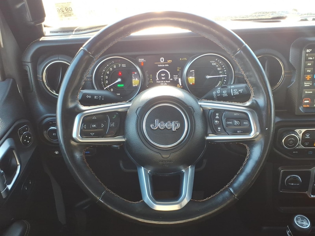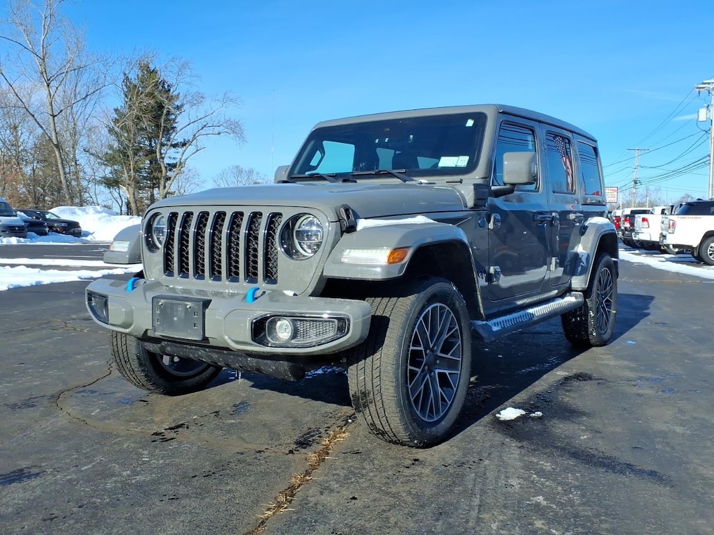 2022 Jeep Wrangler Unlimited Sahara High Altitude 4xe 2.0L I4 DOHC. Vehicle is equipped: Advanced Safety Group (Adaptive Cruise Control w/Stop, Advanced Brake Assist, Auto High Beam Headlamp Control, and Full Speed Forward Collision Warning Plus), Cold Weather Group (Heated Front Seats, Heated Steering Wheel, and Remote Start System), High Altitude Package, Quick Order Package 29N High Altitude (Body Color 3-Piece Hard Top, Body Color Door Handles, Body Color Front Bumper, Body Color Grille w/Gloss Black Rings, Body Color Power Locking Fuel Filler Door, Body Color Rear Bumper w/Step Pads, Exterior Mirrors w/Supplemental Signals, Freedom Panel Storage Bag, Leather Trimmed Bucket Seats, Premium Dark Exterior Accents, Rear Window Defroster, Rear Window Wiper/Washer, Summit Badging, Wheels: 20 x 8.0 Fully Painted Aluminum, and Wrapped I/P Bezel w/Caramel Stitch), Safety Group (Blind Spot & Cross Path Detection and ParkSense Rear Park Assist System), Trailer Tow & HD Electrical Group (7 & 4 Pin Wiring Harness, 700 Amp Maintenance Free Battery, Auxiliary Switches, and Class II Receiver Hitch), Chrysler Group Certified Pre-Owned Certified, 2.0L I4 DOHC, 3.73 Rear Axle Ratio, 4-Wheel Disc Brakes, 9 Speakers, ABS brakes, Air Conditioning, Alloy wheels, AM/FM radio, Apple CarPlay/Android Auto, Auto-dimming Rear-View mirror, Automatic temperature control, Brake assist, Compass, Delay-off headlights, Driver door bin, Driver vanity mirror, Dual front impact airbags, Dual front side impact airbags, Electronic Stability Control, Emergency communication system: SiriusXM Guardian, Front anti-roll bar, Front Bucket Seats, Front Center Armrest w/Storage, Front dual zone A/C, Front fog lights, Front License Plate Bracket, Front reading lights, Fully automatic headlights, Garage door transmitter, Heated door mirrors, Illuminated entry, Integrated roll-over protection, Leather Shift Knob, Leather steering wheel, Low tire pressure warning, MOPAR Windshield Tie Down, Navigation System, Occupant sensing airbag, Outside temperature display, Panic alarm, ParkView Rear Back-Up Camera, Passenger door bin, Passenger vanity mirror, Power door mirrors, Power steering, Power Top Quarter Window Storage Bag, Power windows, Premium McKinley Trimmed Seats, Radio data system, Radio: Uconnect 4C Nav w/8.4 Display, Rear anti-roll bar, Rear reading lights, Rear seat center armrest, Remote keyless entry, Removable Rear Quarter Windows, Security system, Sky 1-Touch Power Top, Speed control,