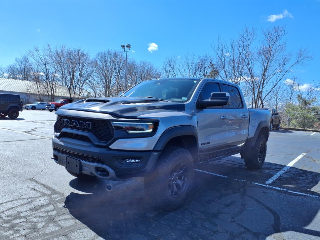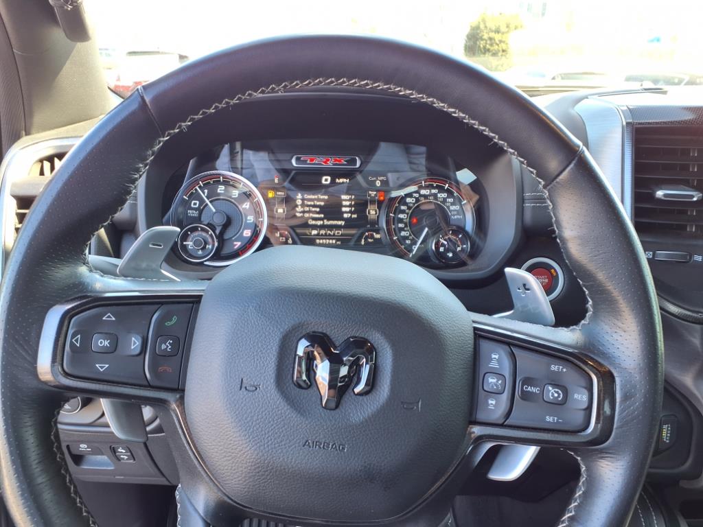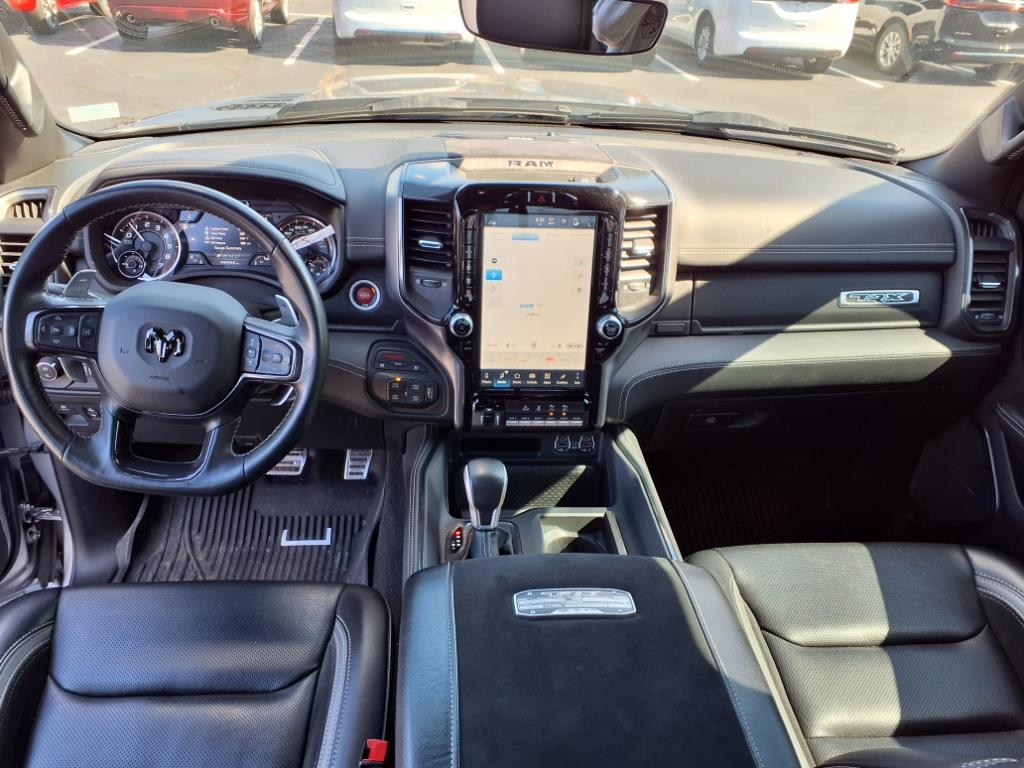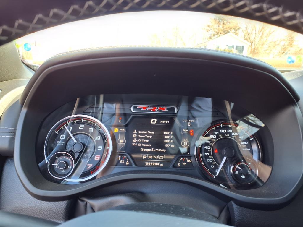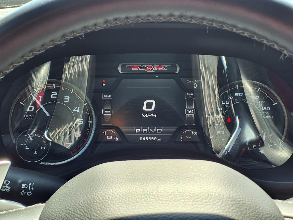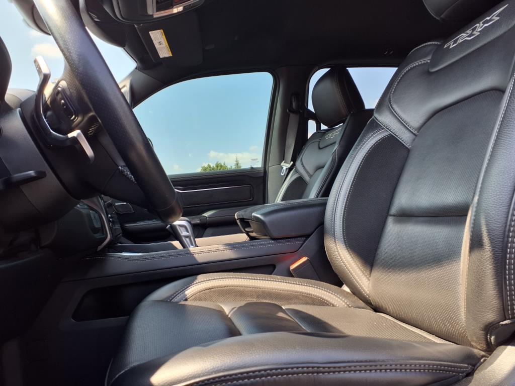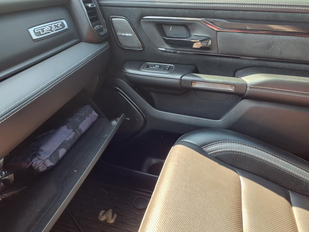 2022 Ram 1500 TRX Vehicle is equipped: Bed Utility Group (MOPAR 4 Adjustable Cargo Tie-Down Hooks, MOPAR Deployable Bed Step, and MOPAR Spray In Bedliner), Quick Order Package 29Y, Trailer Tow Group (Trailer Brake Control, Trailer Light Check, and Trailer Tire Pressure Monitoring System), TRX Level 1 Equipment Group (#2 Seat Foam Cushion, 4 Way Front Headrests, Body Color Door Handles, Bucket Seats, Center Console Parts Module, Driver/Passenger Wrapped Assist Handles, Front Door Accent Lighting, Front Seat Back Map Pockets, Full Length Premium Upgraded Floor Console, Heated Front Seats, Heated Steering Wheel, IP LED Ambient Light Pipe, Leather Trimmed Bucket Seats, Luxury Front Door Trim Panel, MOPAR Bright Pedal Kit, Pick-Up Box Lighting, Power 4-Way Driver Lumbar Adjust, Power 4-Way Passenger Lumbar Adjust, Power 8-Way Driver & Passenger Seats, Power Adjustable Pedals, Premium Wrapped IP Bezel, Rain Sensitive Windshield Wipers, Rear 60/40 Folding Seat, Rear Door Accent Lighting, Rear Underseat Compartment Storage, Rear Window Defroster, Sun Visors w/Illuminated Vanity Mirrors, and Universal Garage Door Opener), 10 Speakers, 3.55 Rear Axle Ratio, 4-Wheel Disc Brakes, ABS brakes, Adaptive suspension, Air Conditioning, Alloy wheels, AM/FM radio: SiriusXM with 360L, Apple CarPlay/Android Auto, Auto High-beam Headlights, Auto-dimming door mirrors, Auto-dimming Rear-View mirror, Automatic temperature control, Black Exterior Mirrors, Black Power-Fold Trailer Tow Mirrors, Blind Spot & Cross Path Detection, Brake assist, Cloth/Vinyl Bucket Seats, Compass, Delay-off headlights, Driver door bin, Dual front impact airbags, Dual front side impact airbags, Electronic Stability Control, Exterior Mirrors Courtesy Lamps, Exterior Mirrors w/Heating Element, Exterior Mirrors w/Memory, Exterior Mirrors w/Supplemental Signals, Front anti-roll bar, Front Bucket Seats, Front Center Armrest w/Storage, Front dual zone A/C, Front fog lights, Front License Plate Bracket, Front reading lights, Front wheel independent suspension, Fully automatic headlights, harman/kardon 19 Speaker Premium Sound, Heated door mirrors, Illuminated entry, Leather Shift Knob, Leather steering wheel, Low tire pressure warning, Manufacturer's Statement of Origin, Mirror Clearance/Running Lights, Mirror-Mounted Aux Reverse Lamps, Navigation System, Occupant sensing airbag, Outside temperature display, Overhead airbag, Overhead console, Panic alarm, ParkSense Front/Rear Park Assist w/Stop, ParkView Rear