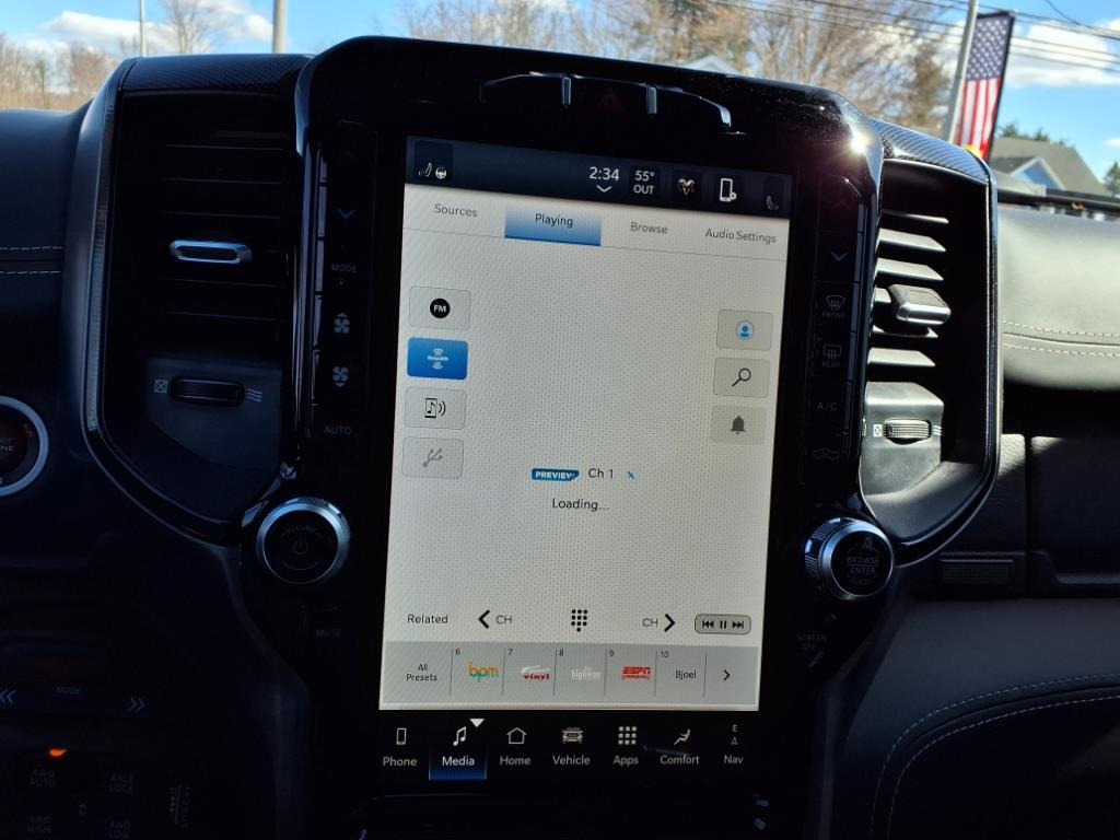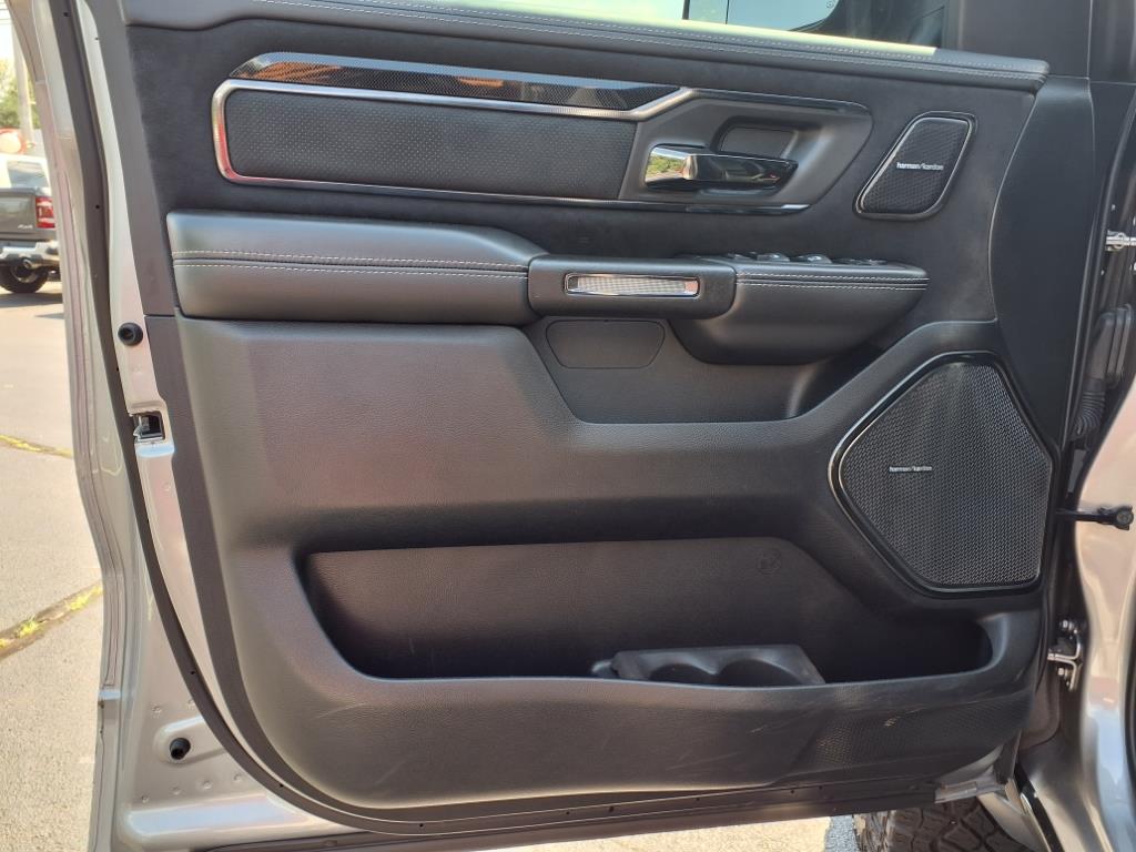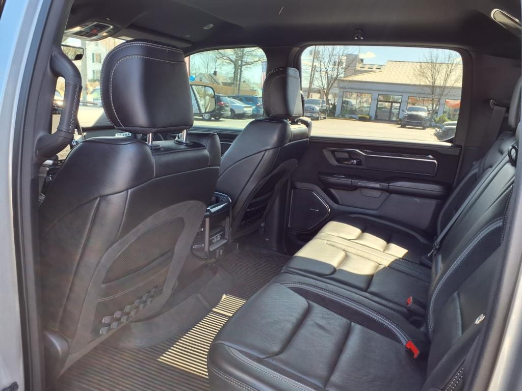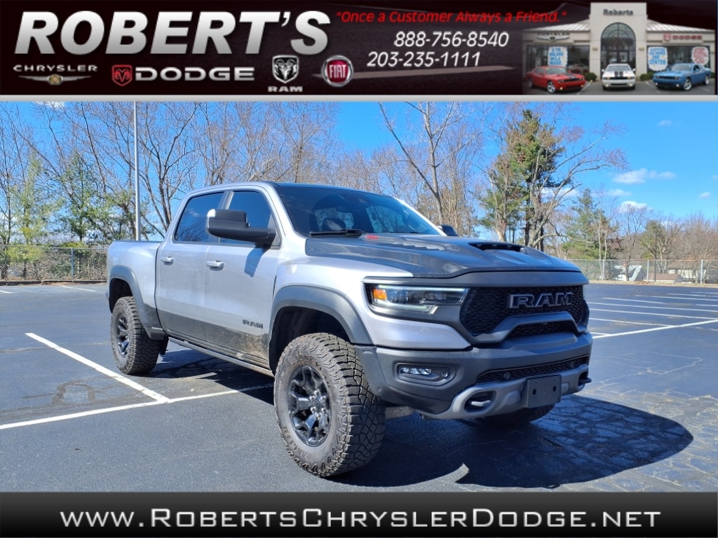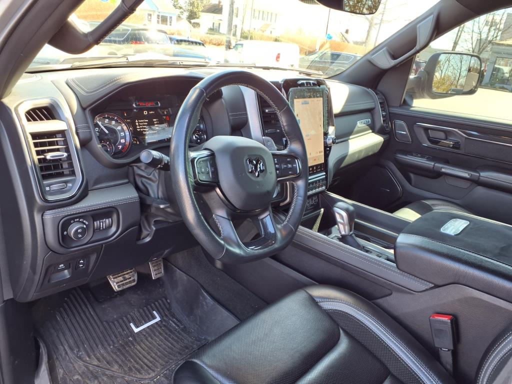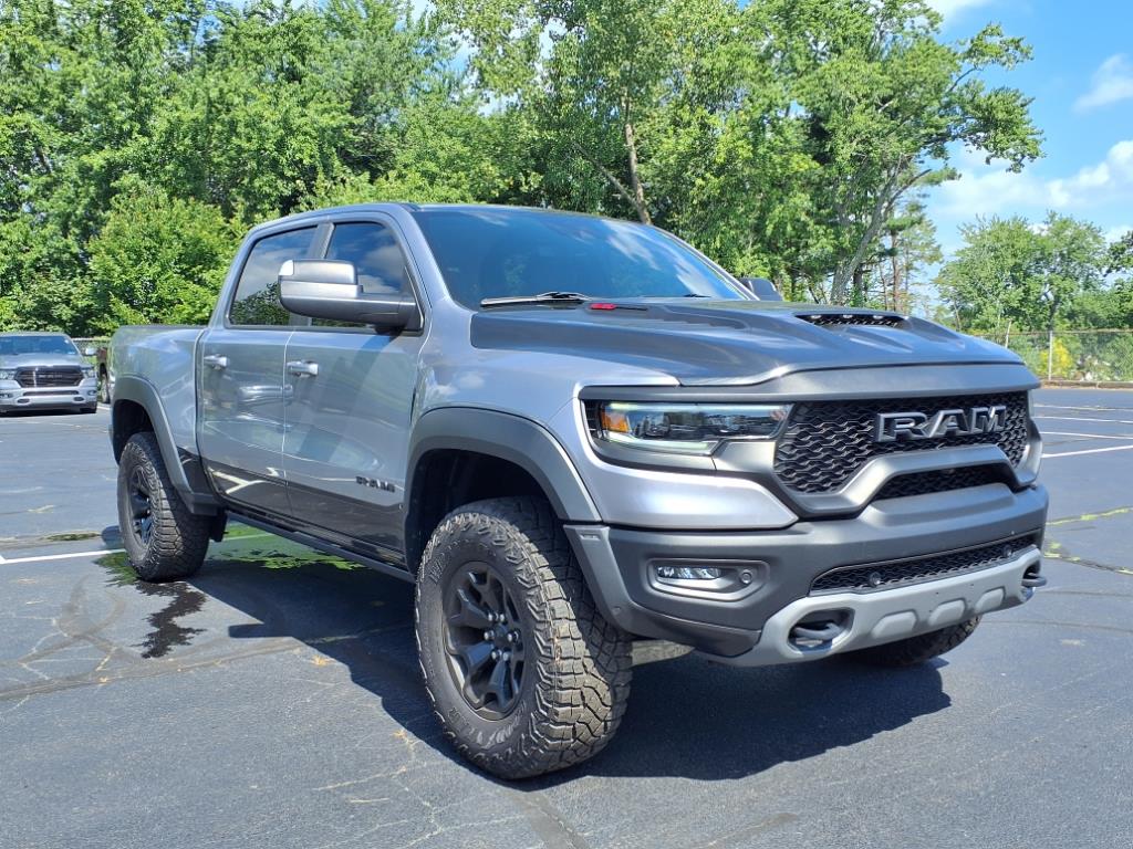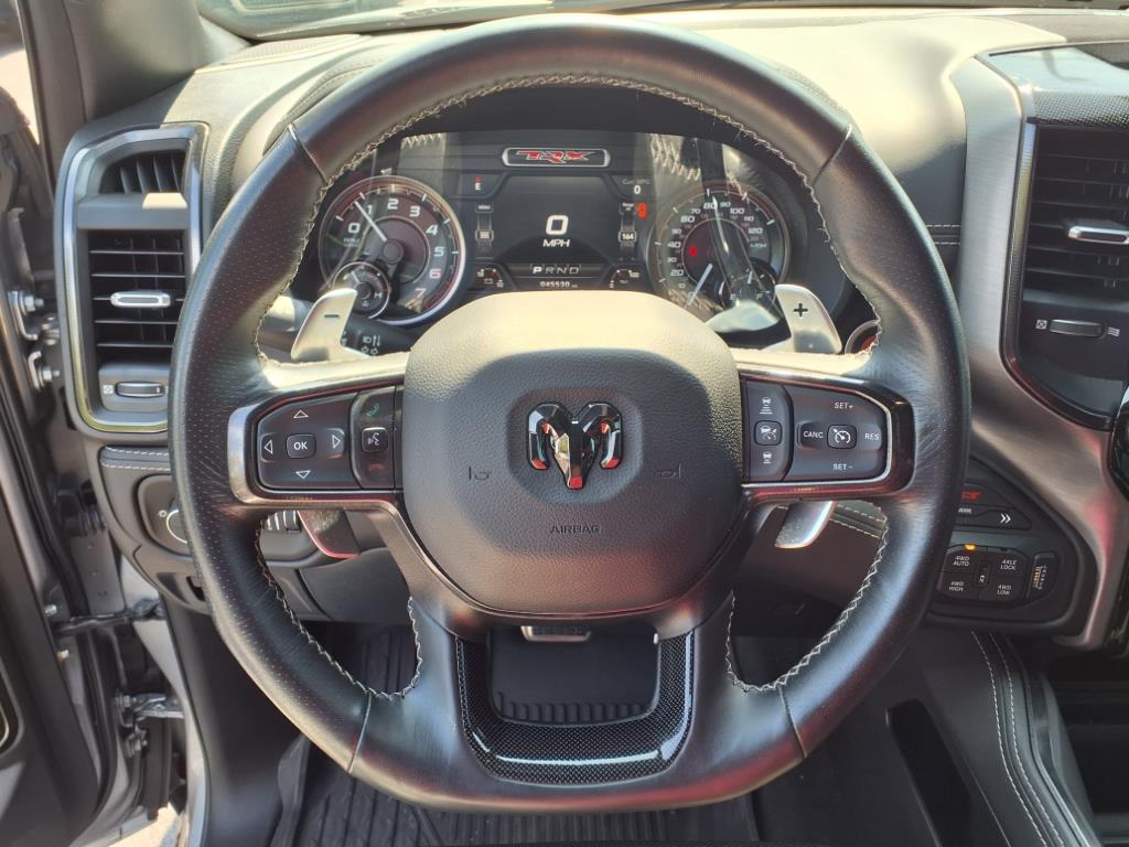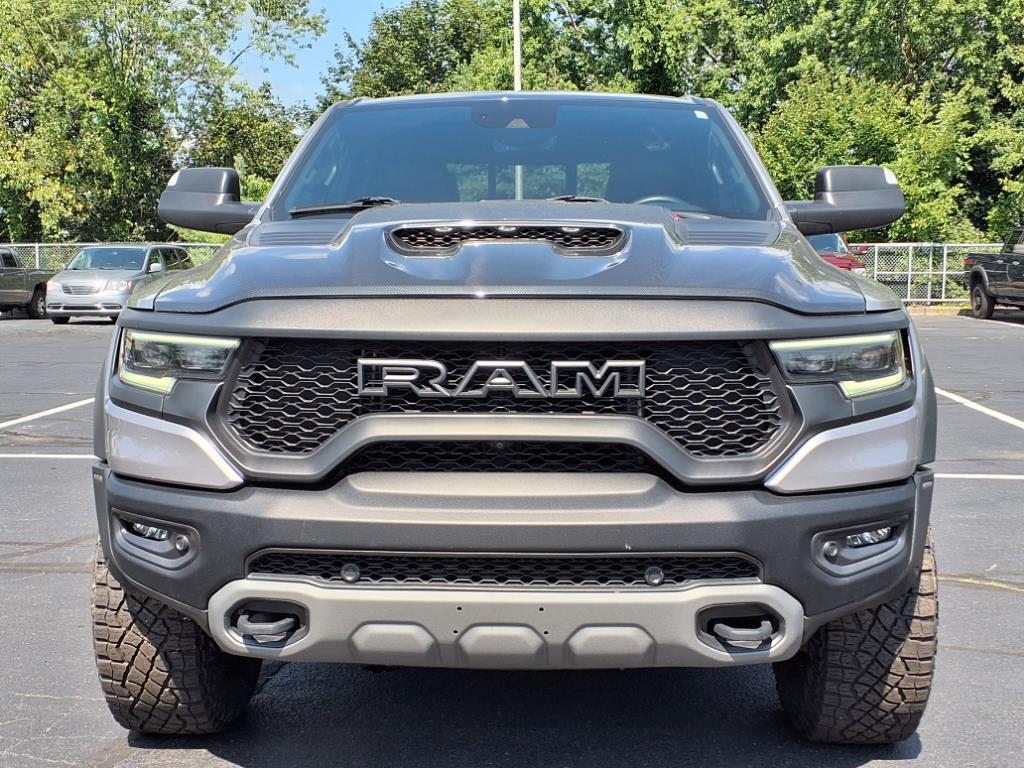 2022 Ram 1500 TRX Vehicle is equipped: Bed Utility Group (MOPAR 4 Adjustable Cargo Tie-Down Hooks, MOPAR Deployable Bed Step, and MOPAR Spray In Bedliner), Quick Order Package 29Y, Trailer Tow Group (Trailer Brake Control, Trailer Light Check, and Trailer Tire Pressure Monitoring System), TRX Level 1 Equipment Group (#2 Seat Foam Cushion, 4 Way Front Headrests, Body Color Door Handles, Bucket Seats, Center Console Parts Module, Driver/Passenger Wrapped Assist Handles, Front Door Accent Lighting, Front Seat Back Map Pockets, Full Length Premium Upgraded Floor Console, Heated Front Seats, Heated Steering Wheel, IP LED Ambient Light Pipe, Leather Trimmed Bucket Seats, Luxury Front Door Trim Panel, MOPAR Bright Pedal Kit, Pick-Up Box Lighting, Power 4-Way Driver Lumbar Adjust, Power 4-Way Passenger Lumbar Adjust, Power 8-Way Driver & Passenger Seats, Power Adjustable Pedals, Premium Wrapped IP Bezel, Rain Sensitive Windshield Wipers, Rear 60/40 Folding Seat, Rear Door Accent Lighting, Rear Underseat Compartment Storage, Rear Window Defroster, Sun Visors w/Illuminated Vanity Mirrors, and Universal Garage Door Opener), 10 Speakers, 3.55 Rear Axle Ratio, 4-Wheel Disc Brakes, ABS brakes, Adaptive suspension, Air Conditioning, Alloy wheels, AM/FM radio: SiriusXM with 360L, Apple CarPlay/Android Auto, Auto High-beam Headlights, Auto-dimming door mirrors, Auto-dimming Rear-View mirror, Automatic temperature control, Black Exterior Mirrors, Black Power-Fold Trailer Tow Mirrors, Blind Spot & Cross Path Detection, Brake assist, Cloth/Vinyl Bucket Seats, Compass, Delay-off headlights, Driver door bin, Dual front impact airbags, Dual front side impact airbags, Electronic Stability Control, Exterior Mirrors Courtesy Lamps, Exterior Mirrors w/Heating Element, Exterior Mirrors w/Memory, Exterior Mirrors w/Supplemental Signals, Front anti-roll bar, Front Bucket Seats, Front Center Armrest w/Storage, Front dual zone A/C, Front fog lights, Front License Plate Bracket, Front reading lights, Front wheel independent suspension, Fully automatic headlights, harman/kardon 19 Speaker Premium Sound, Heated door mirrors, Illuminated entry, Leather Shift Knob, Leather steering wheel, Low tire pressure warning, Manufacturer's Statement of Origin, Mirror Clearance/Running Lights, Mirror-Mounted Aux Reverse Lamps, Navigation System, Occupant sensing airbag, Outside temperature display, Overhead airbag, Overhead console, Panic alarm, ParkSense Front/Rear Park Assist w/Stop, ParkView Rear