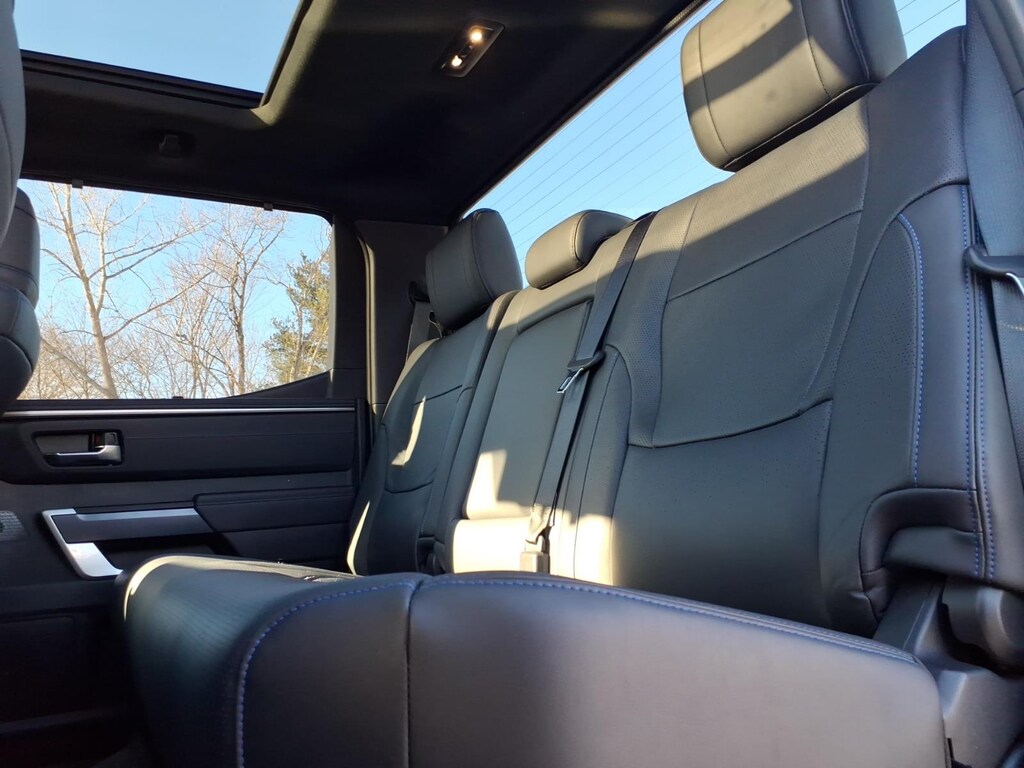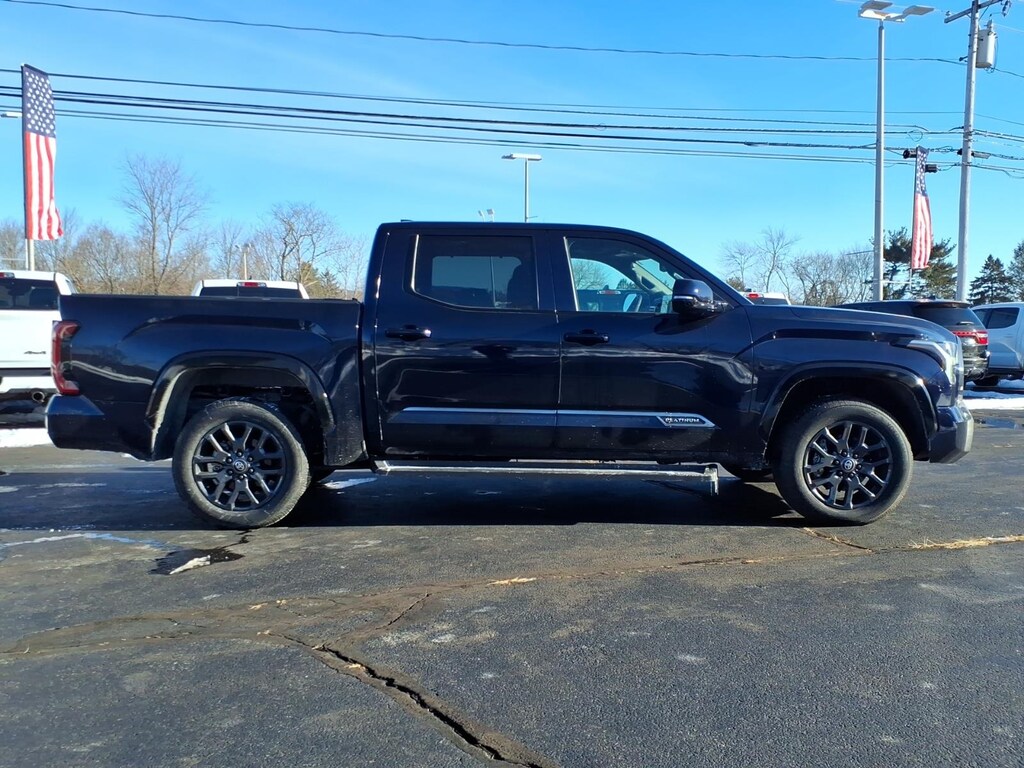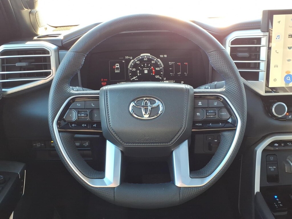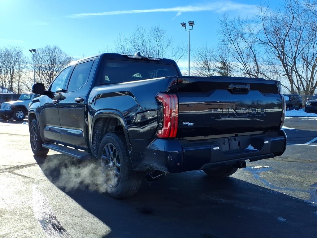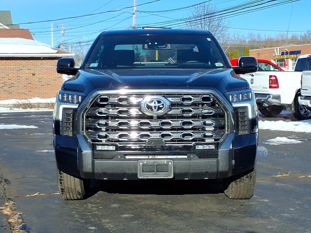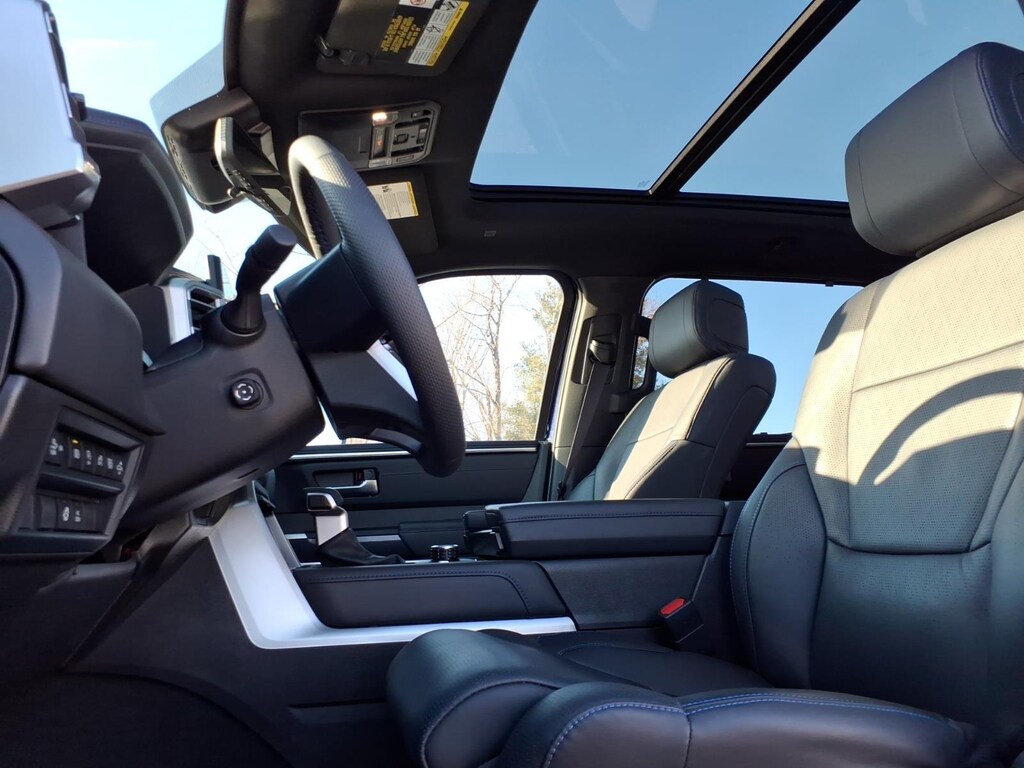 Recent Arrival! 2025 Toyota Tundra Platinum 4WD, Black Leather. Vehicle is equipped: 4WD, Black Leather, 10-Way Pwr Adj Heated and Ventilated Front Seats, 12 Speakers, 3.31 Axle Ratio, 4-Wheel Disc Brakes, ABS brakes, Air Conditioning, Alloy wheels, AM/FM radio: SiriusXM, Apple CarPlay/Android Auto, Auto High-beam Headlights, Auto-dimming door mirrors, Auto-dimming Rear-View mirror, Automatic temperature control, Backup Camera, Brake assist, Bumpers: body-color, Delay-off headlights, Driver door bin, Driver vanity mirror, Dual front impact airbags, Dual front side impact airbags, Electronic Stability Control, Emergency communication system: Safety Connect (10-year trial), Front anti-roll bar, Front Bucket Seats, Front Center Armrest, Front dual zone A/C, Front fog lights, Front reading lights, Front wheel independent suspension, Fully automatic headlights, Garage door transmitter: HomeLink, Heated door mirrors, Heated front seats, Heated rear seats, Heated steering wheel, Illuminated entry, Knee airbag, Leather Shift Knob, Leather steering wheel, Low tire pressure warning, Memory seat, Navigation System, Occupant sensing airbag, Outside temperature display, Overhead airbag, Overhead console, Panic alarm, Passenger door bin, Passenger vanity mirror, Power door mirrors, Power driver seat, Power moonroof, Power passenger seat, Power steering, Power windows, Premium Leather Seat Trim, Radio data system, Radio: Audio Multimedia System, Rain sensing wipers, Rear reading lights, Rear seat center armrest, Rear step bumper, Rear window defroster, Remote keyless entry, Safety Connect, Security system, Speed control, Speed-sensing steering, Split folding rear seat, Steering wheel memory, Steering wheel mounted audio controls, Tachometer, Telescoping steering wheel, Tilt steering wheel, Traction control, Trip computer, Turn signal indicator mirrors, Variably intermittent wipers, Ventilated front seats, Ventilated rear seats, Voltmeter, and Wheels: 20 Dark Painted Alloy.